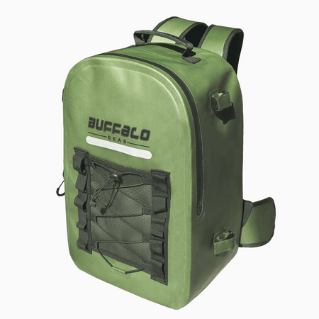 Made of high-strength fiber-reinforced tarp with a double-sided TPU coating, this 26L waterproof fishing backpack keeps your gear dry and protected from rain, splashes, and rough use.