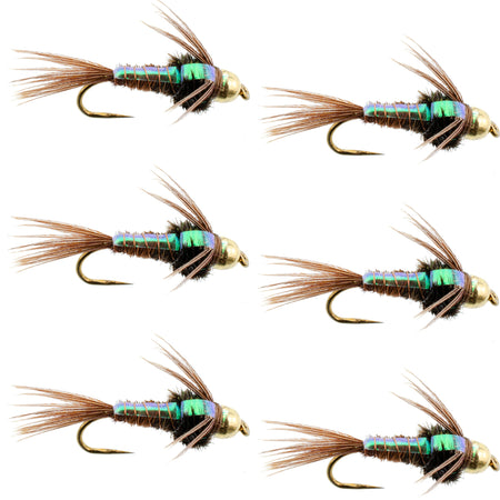 Barbless Bead Head Flashback Pheasant Tail Nymph Fly 6 Flies Hook Size 12