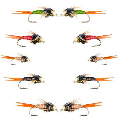 Basics Collection - Bead Head Copper John Assortment - 10 Wet Flies - 5 Patterns - Hook Sizes 14, 16, 18