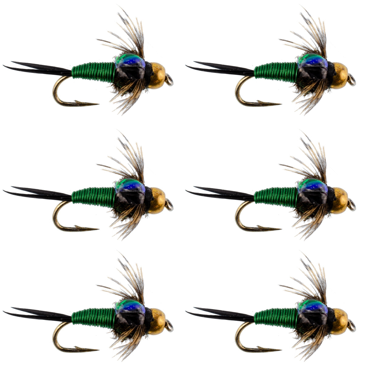 Startseite»Bead Head Green Copper John Nymph Fly Fishing Flies - Set of 6 Flies Hook Size 12