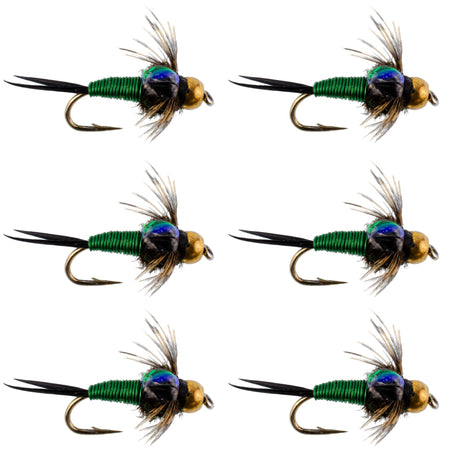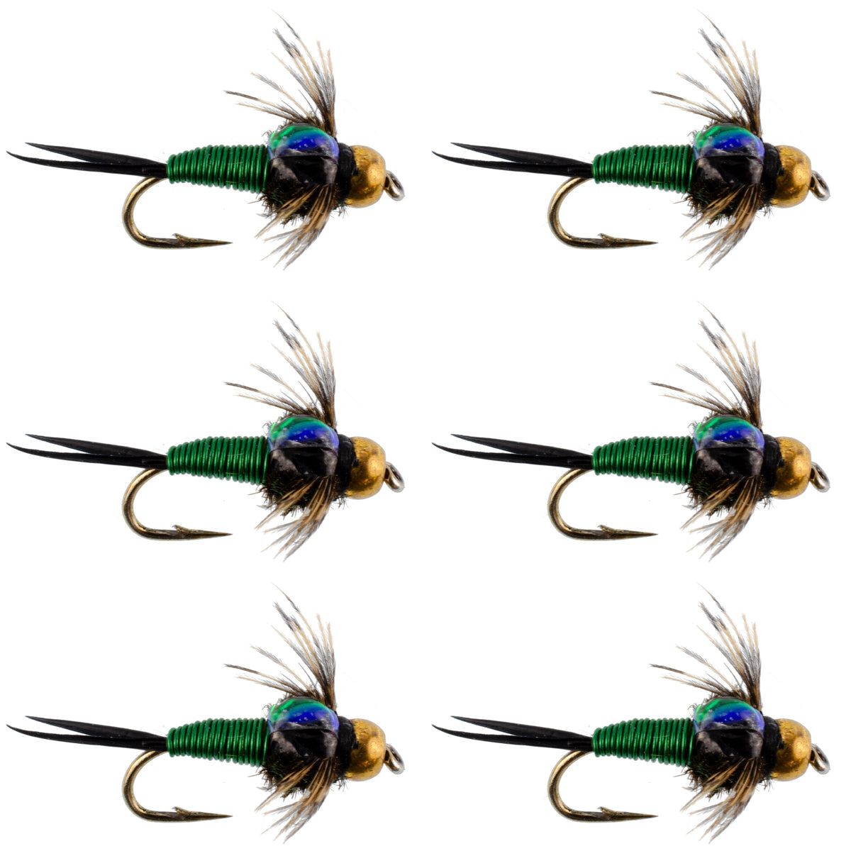 Startseite»Bead Head Green Copper John Nymph Fly Fishing Flies - Set of 6 Flies Hook Size 16