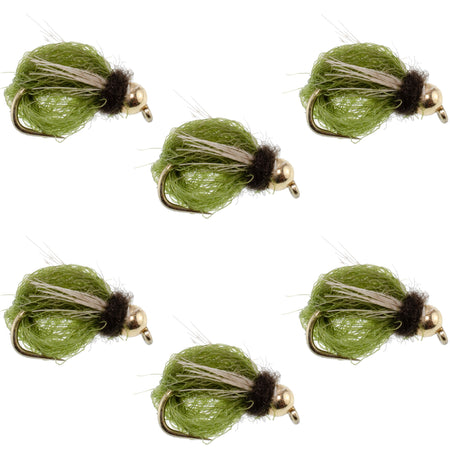 Bead Head LaFontaine Olive Deep Sparkle Caddis Pupa - 6 Flies Hook Size 16