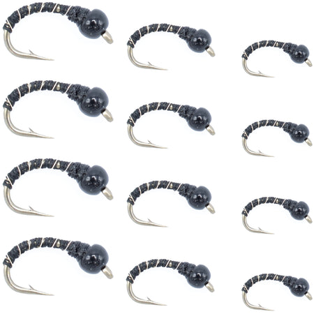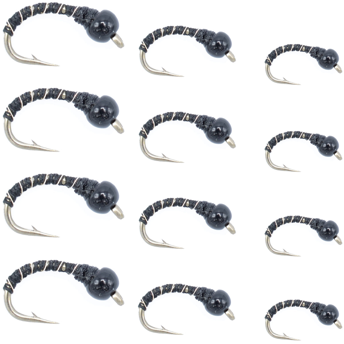 Startseite»Black Zebra Midge Assortment - Black Bead Head - 1 Dozen - 4 Each of 3 Sizes 14, 16, 18 - Tailwater and Lake Fly Fishing Flies Assortment