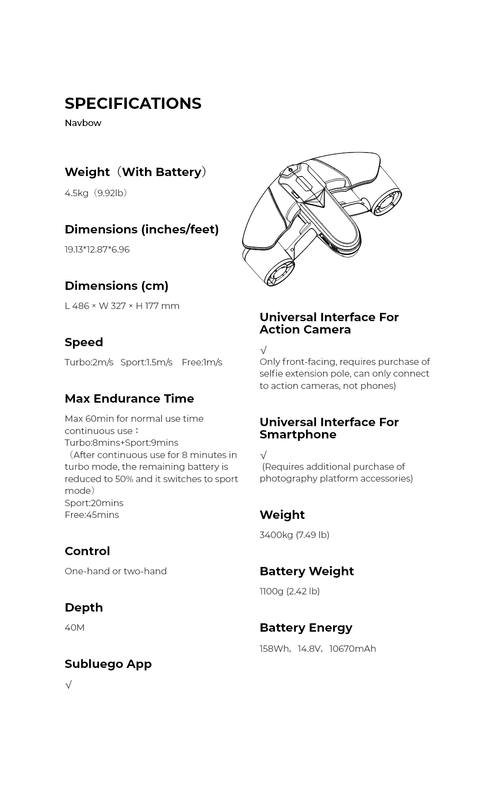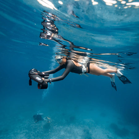 A professional-grade underwater scooter featuring three-speed settings, a top speed of 2m/s (4.5mph) – darting like an arrow – and versatile one-hand or two-hand operation!