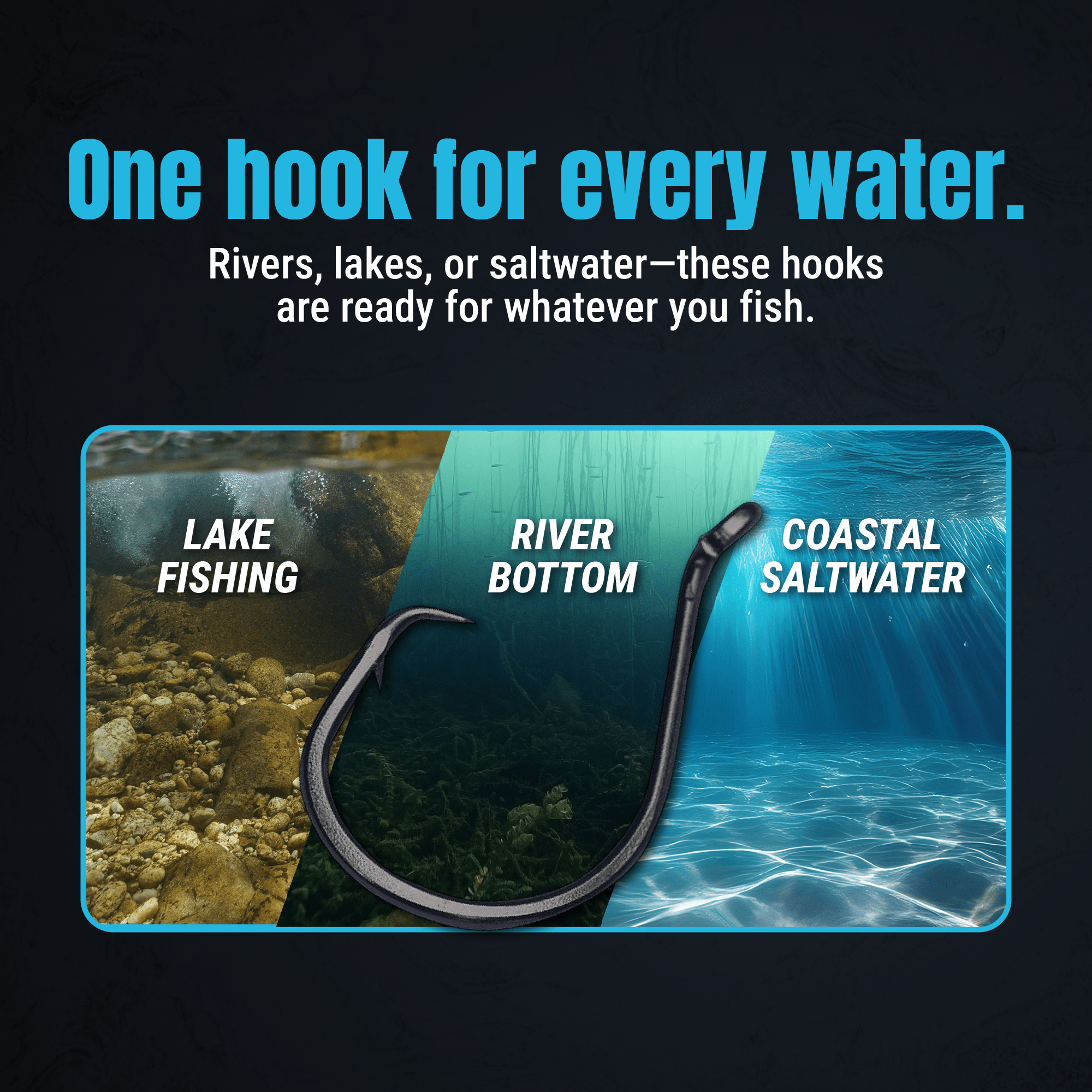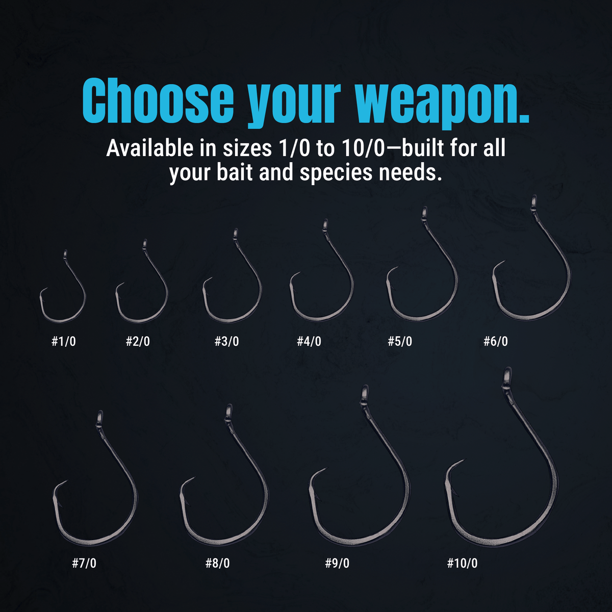 Introducing the Reaction Tackle Heavy Duty Octopus Circle Hooks, a superior choice for all your angling adventures. Whether you're navigating the challenges of freshwater or the vastness of saltwater, our fishing hooks are designed to meet the demands of every serious angler. The Reaction Tackle brand is synonymous with quality and durability, ensuring you have reliable equipment in your tackle box. Saltwater grade, corrosion resistant, black nickel finish hooks.