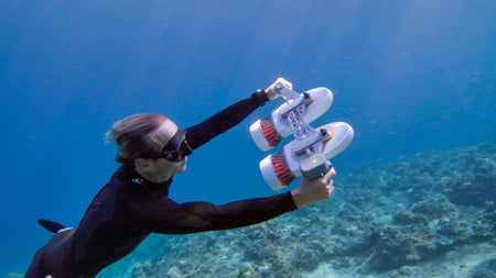 Modular scooter, freely assemblable. Enjoy double or triple thrust, and pair it with various accessories such as floating boards, paddle board power sets, etc. to have fun in the underwater world!