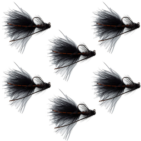 Hand Tied Bead Head Black Mini Bugger Tactical Euro Polish Czech Nymph Flies - Set of 6 Flies Hook Size 12