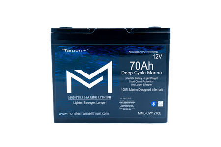 Are you looking for a portable lightweight battery to power your 12V electronics, kayak, trolling motor, or for any outdoor power supply? Well look no further this is it! Weighing in at only 20 lbs. Not only will it save you room but it also cuts your weight by about 60%! The MML-CW1270B Tarpon battery is built with Lithium Iron Phosphate (LiFePO4) technologywith bluetooth monitoring via our IOS & Android app, this battery has twice the power, a fraction of the weight, and lasts 4 times longer than a sealed lead acid battery. Installation is easy & it's a very simple plug ang play! Up to 4 batteries can be wired in series for 24v & 36v trolling motors or 48v systems.