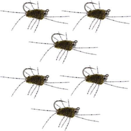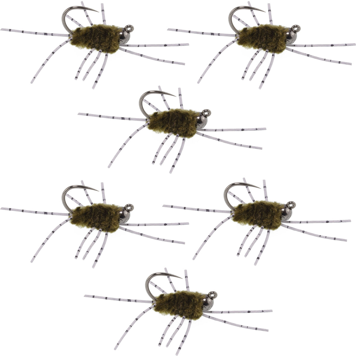 Casa»Barbless Pat's Barred Rubber Legs Tungsten Bead Jigged Dark Olive Euro Nymph - Set of 6 Flies Hook Size 6