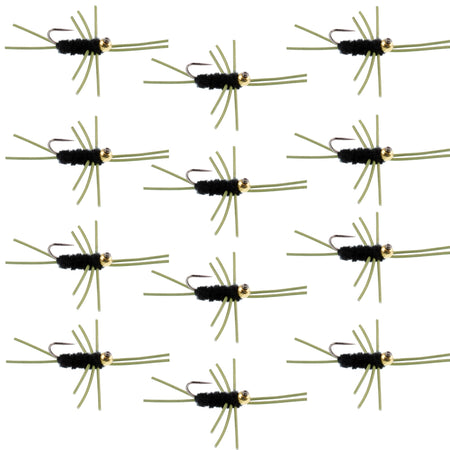 Casa»Barbless Pat's Rubber Legs Tungsten Bead Jigged Black Euro Nymph - Set of 12 Flies Hook Size 10