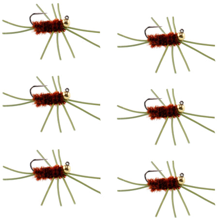 Casa»Barbless Pat's Rubber Legs Tungsten Bead Jigged Brown Euro Nymph - Set of 6 Flies Hook Size 10