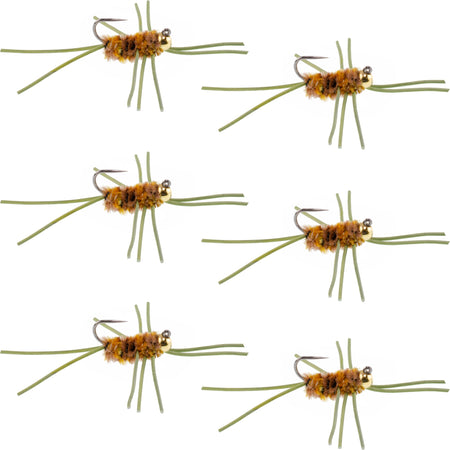 Casa»Barbless Pat's Rubber Legs Tungsten Bead Jigged Coffee/Tan Euro Nymph - Set of 6 Flies Hook Size 10