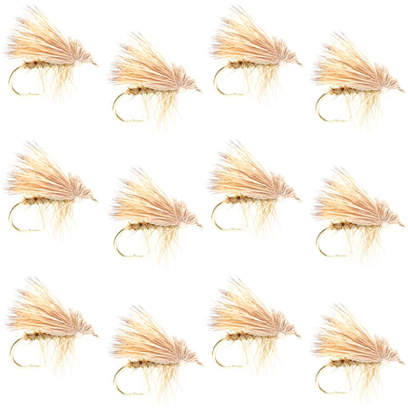 Set of 12 hand tied fly fishing dry flies on barbless hook size 14