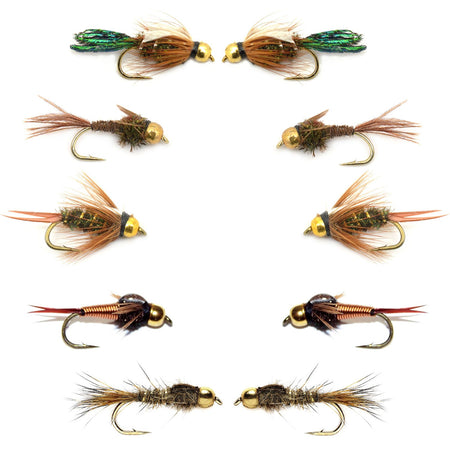 Includes 2 each: Bead Head Prince, Pheasant Tail, Hare's Ear, Zug Bug and Copper John flies