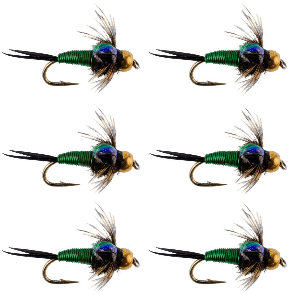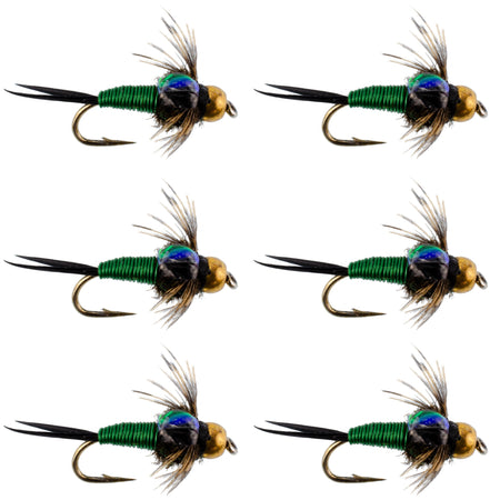 Casa»Bead Head Green Copper John Nymph Fly Fishing Flies - Set of 6 Flies Hook Size 14