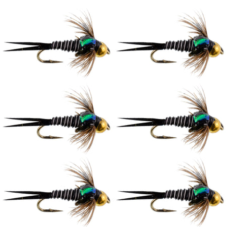 Pack of 6 Zebra Copper John Nymph Flies - Hook Size 14