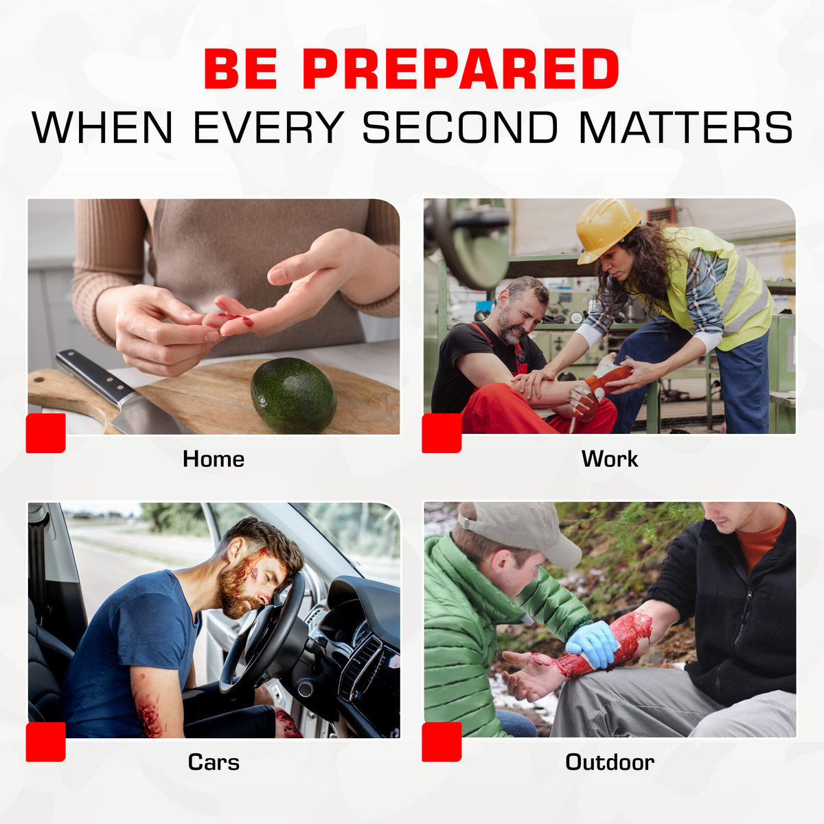 Essential for first responders, outdoor adventurers, and medical personnel to handle traumatic bleeding in critical situations