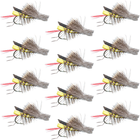 Dave's Hopper Yellow Foam Body Grasshopper Fly - 1 Dozen Flies Hook Size 8