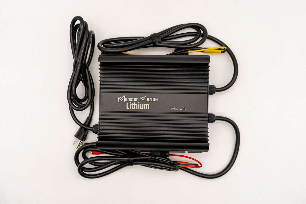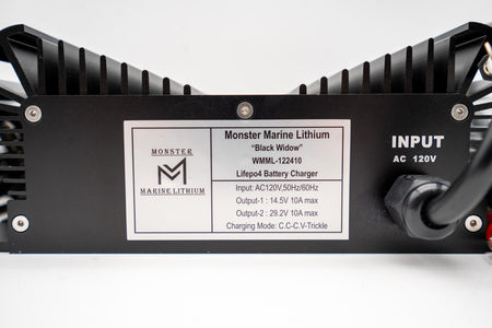 This is our custom made dual bank lithium marine waterproof charger. It has Bank 1 24v for single 24v lithium batteries and Bank 2 for 12v batteries! Our new ACD (automatic charging detection) system allows our charger to work with whatever 12v batteries you have Lead/AGM or Lithium batteries. Even when running 2 of our 24v batteries in parallel this one charger will charge both at the same time! This charger is 100% waterproof and can be mounted on board your boat as you normally would with marine battery chargers!