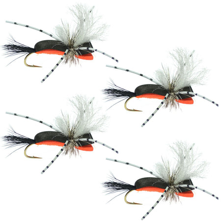 Casa»Hippie Stomper Black Orange Foam Body Grasshopper Dry Fly - 4 Flies Size 10