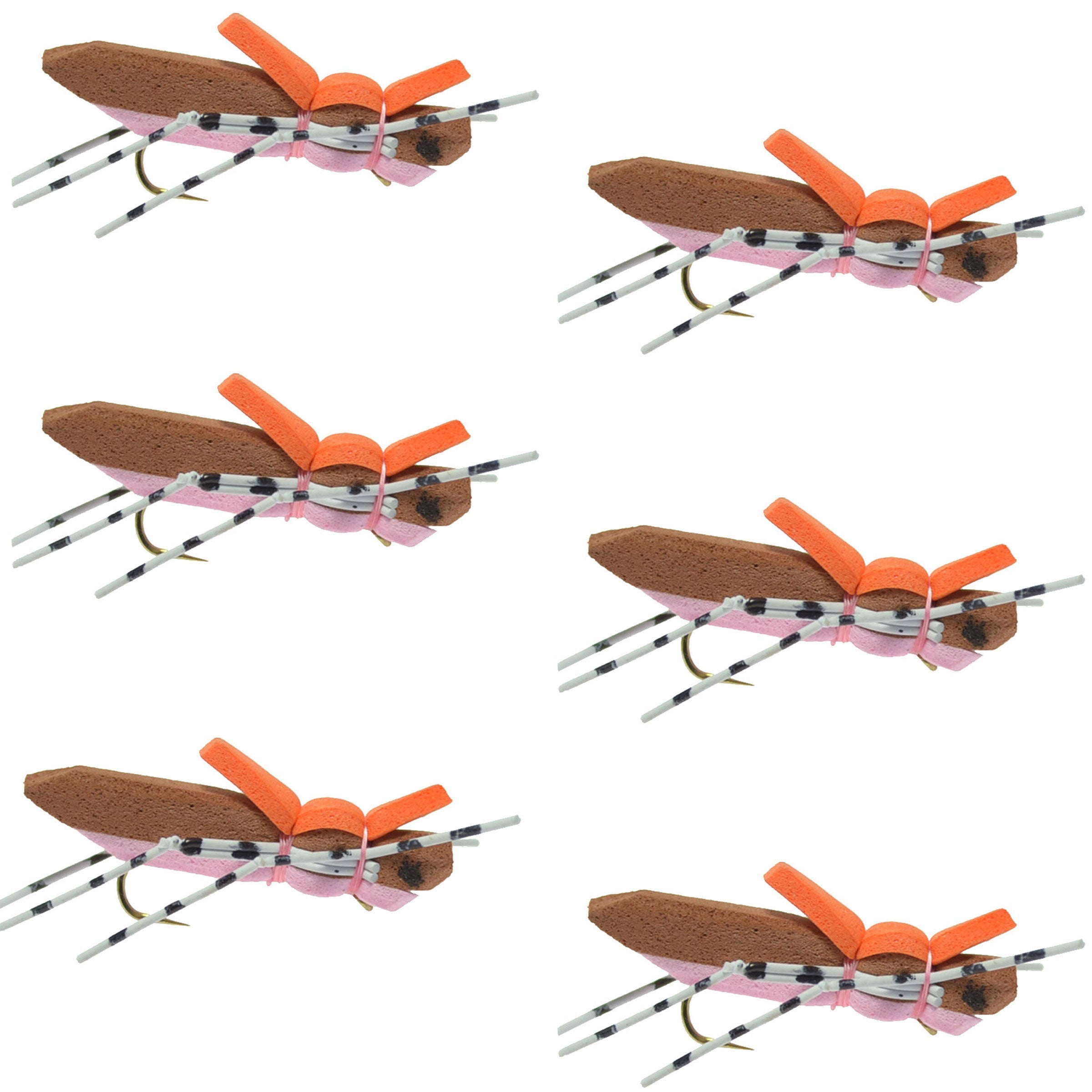 Casa»Moorish Hopper Brown Pink Foam Body Grasshopper Fly - 6 Flies Hook Size 10