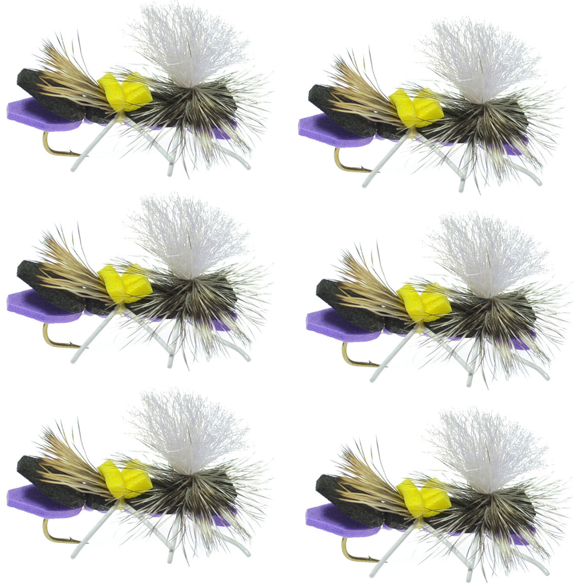Dry flies for trout, bass, panfish or crappie. Perfect for bank-popping in the heat of summer, or for searching pocket water Great strike inducing grasshopper or stonefly adult fly pattern. Unsinkable fly. Perfect for indicator fishing with a beaded nymph dropper