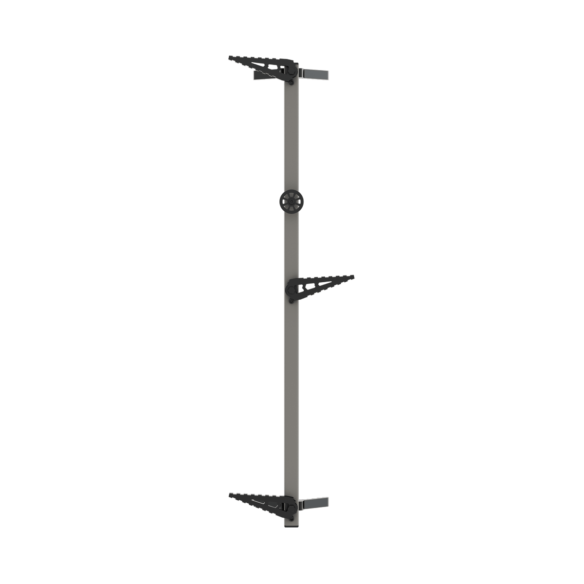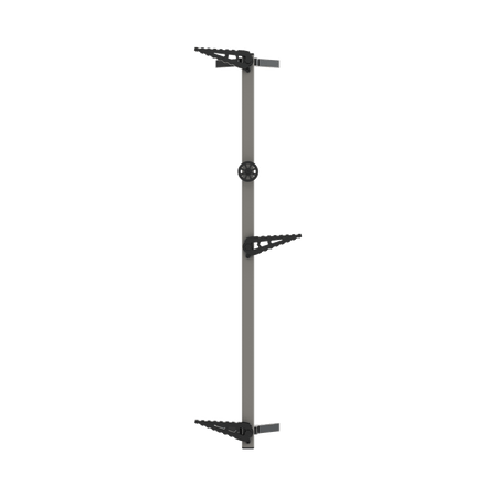 The pivoting V-Bracket grips to the tree and rotates, allowing the climbing stick to stay level even on crooked trees, keeping you as safe as possible when climbing.