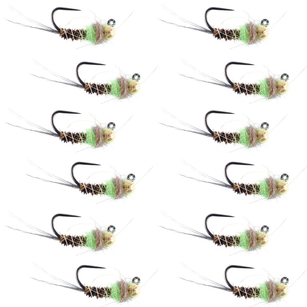 Casa»Tungsten Bead Hot Spot Pheasant Tail Tactical Jig Chartreuse Czech Nymph Euro Nymphing Fly - 1 Dozen Flies Size 14