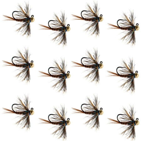 Tungsten Bead Soft Hackle Pheasant Tail Tactical Jig Czech Nymph Euro Nymphing Fly - 1 Dozen Flies Size 16