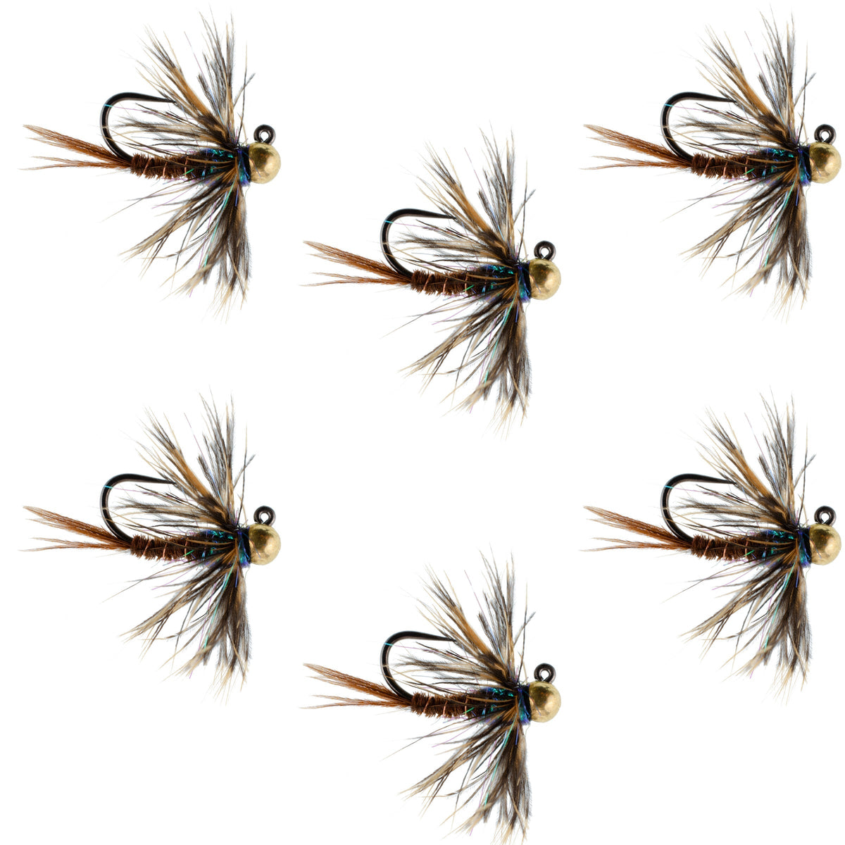 Soft Hackled Pheasant Tail multiple jigged fly rigs have become the go to method for fly fishing success, especially in competitive fly fishing. Tungsten beads for getting deep in the water column quickly in the faster waters that Euro fly fishers typically fish. Czech, Euro-style and Tactical nymphing uses the small profile of the fly and the tungsten bead head to get the lightly dressed flies deep in the water column quickly. The jig fly hook results in the fly swimming hook point up, allowing for more hookups and fewer snags. Perfect for hopper dropper indicator fly fishing. Hand Tied Bead Head Tactical Spanish Euro Polish Czech Nymph Flies - Set of 6 Flies Hook Size 16