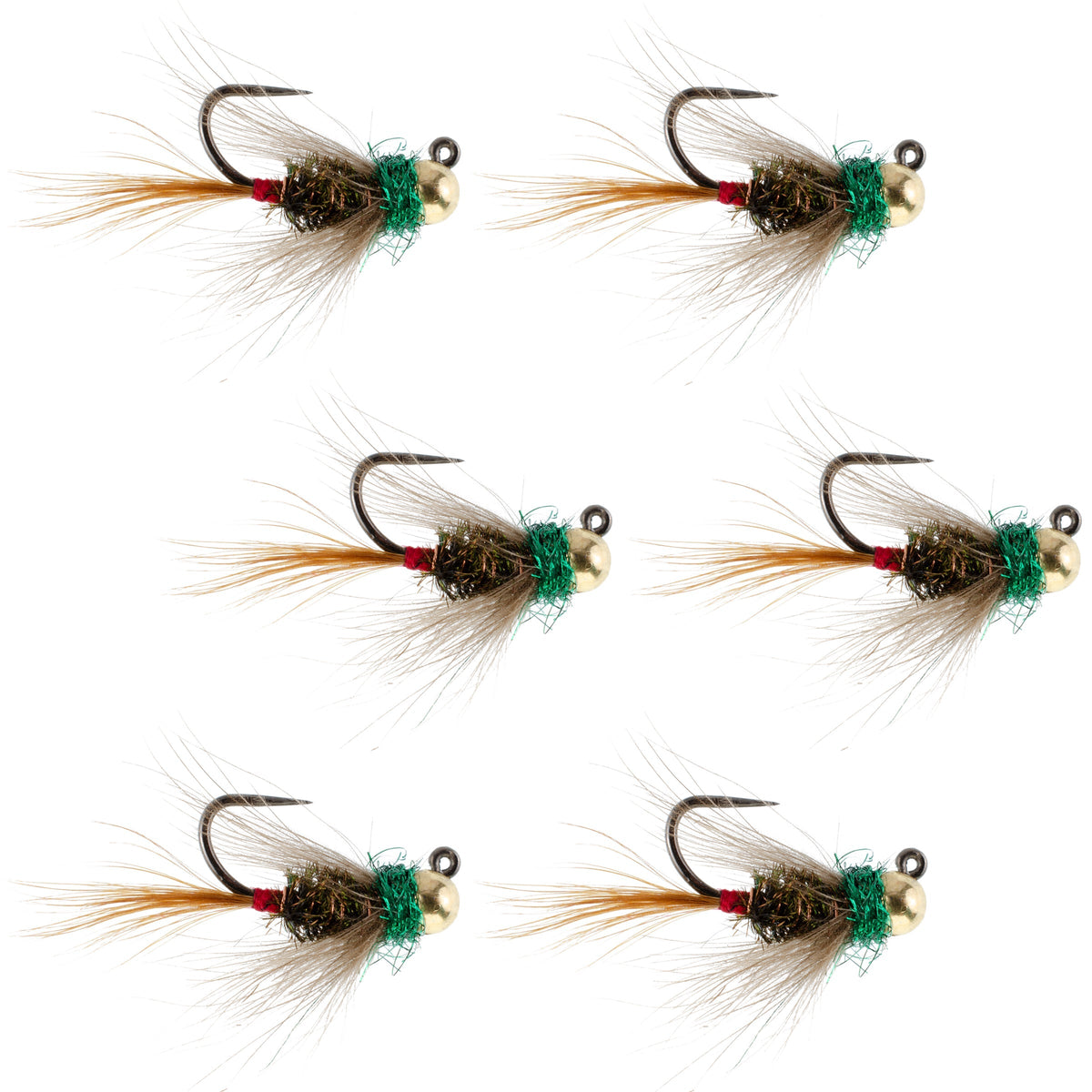Tungsten Bead Tactical CDC Frenchie Czech Nymph Euro Nymphing Fly - 6 Flies Size 14