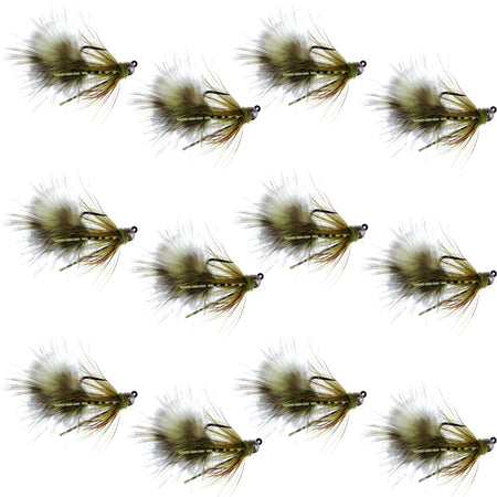 A killer Euro Bugger pattern! Tactical multiple jigged fly rigs have become the go to method for fly fishing success, especially in competitive fly fishing. Tungsten beads for getting deep in the water column quickly in the faster waters that Euro fly fishers typically fish. Czech, Euro-style and Tactical nymphing uses the small profile of the fly and the tungsten bead head to get the lightly dressed flies deep in the water column quickly. The jig fly hook results in the fly swimming hook point up, allowing for more hookups and fewer snags. Perfect for hopper dropper indicator fly fishing. Hand Tied Bead Head Olive Mini Bugger Tactical Euro Polish Czech Nymph Flies - Set of 12 Flies Hook Size 12