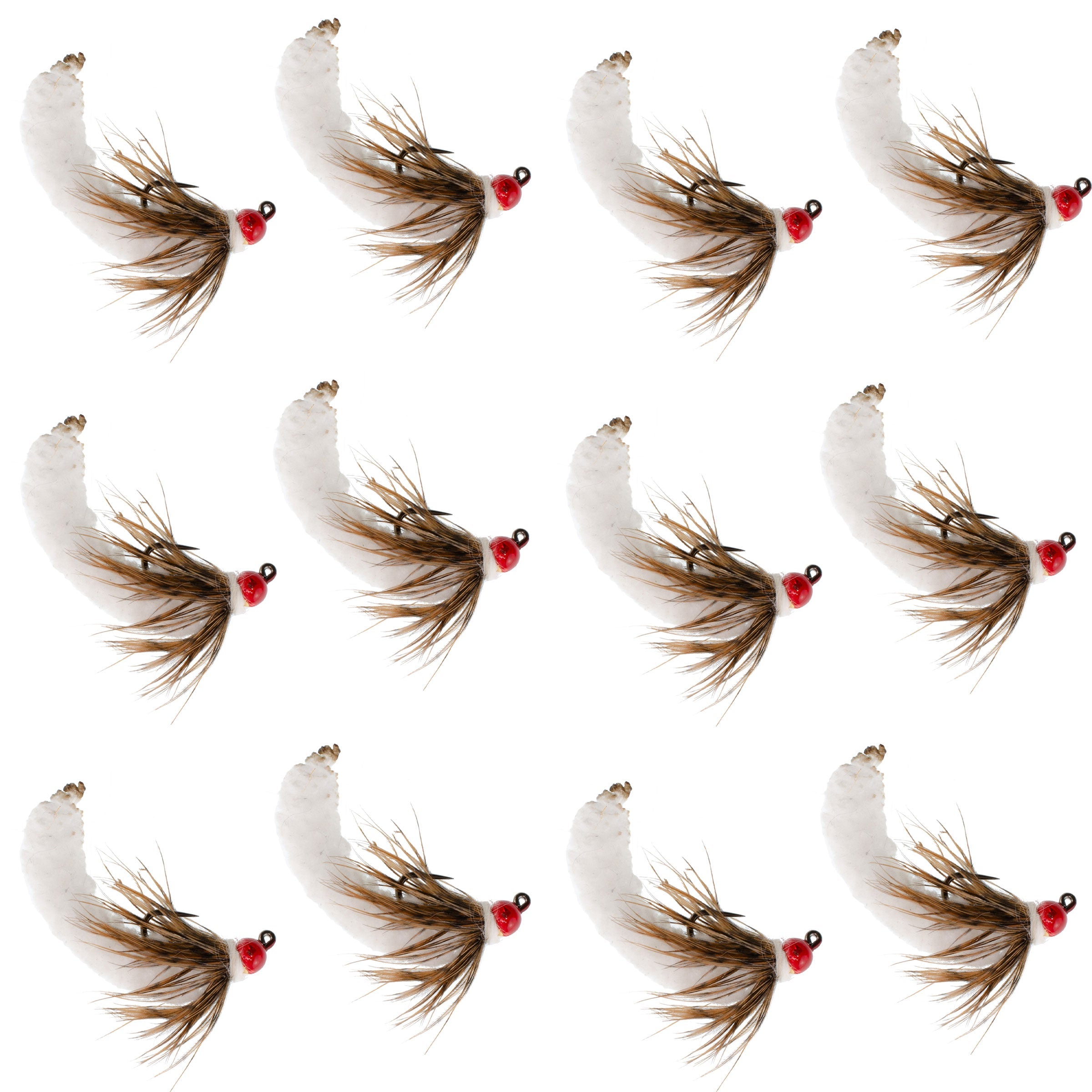 Casa»Tungsten Bead White Mop Fly Tactical Jig Czech Euro Nymph Barbless Fly - 1 Dozen Flies Size 14