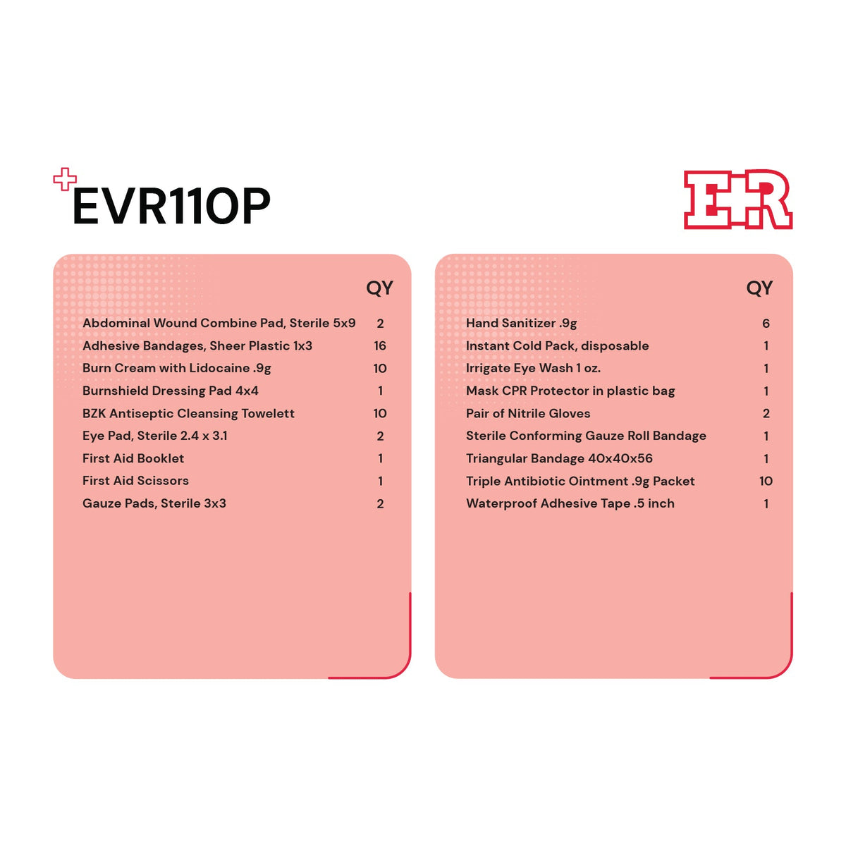 Contains essential first aid items to treat minor injuries for up to 10 people