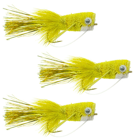 3 Pack Flashtail Bass Popper Size 8 - Yellow Bass Fly Fishing Bug Wide Gape Bass Hooks With Weed Guard