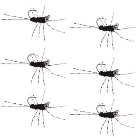 Home»Barbless Pat's Barred Rubber Legs Tungsten Bead Jigged Black Euro Nymph - Set of 6 Flies Hook Size 6
