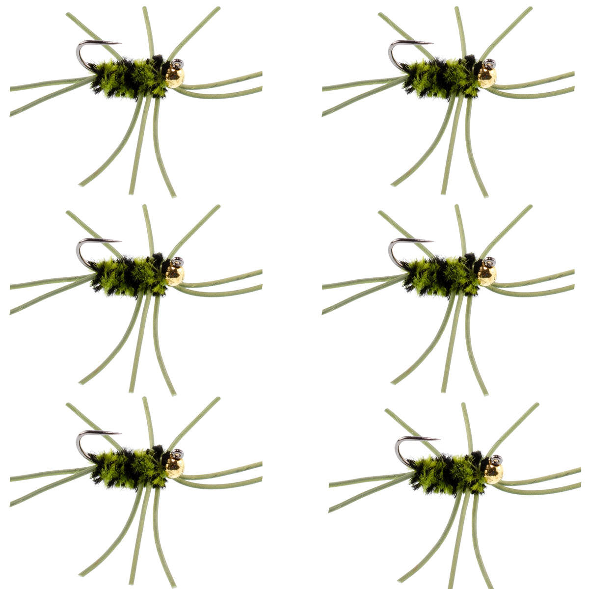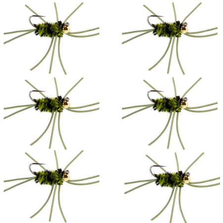 Home»Barbless Pat's Rubber Legs Tungsten Bead Jigged Olive/Black Euro Nymph - Set of 6 Flies Hook Size 10