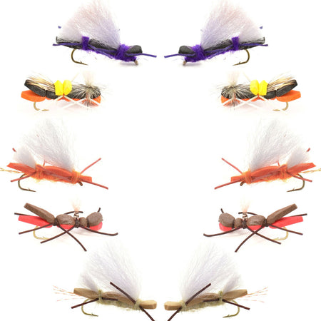 Basics Collection - Chernobyl Ant Foam Dry Fly Assortment - 10 Dry Fishing Grasshopper Flies - 5 Patterns - Hook Size 10