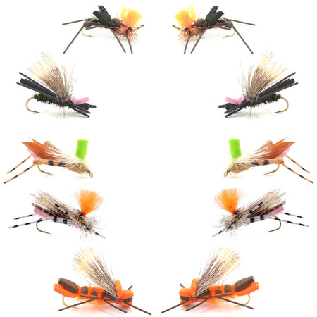 Basics Collection - Foam Hoppers Dry Fly Assortment #2 - 10 Dry Fishing Grasshopper Flies - 5 Patterns - Hook Size 10