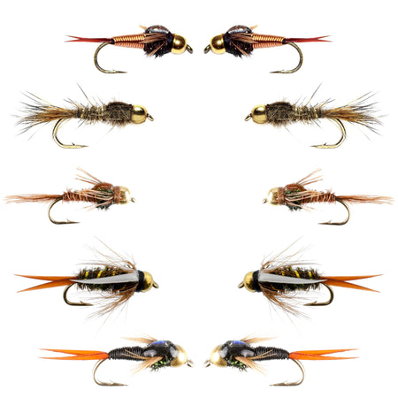 Basics Collection - Tungsten Bead Head Nymph Assortment - 10 Wet Flies - 5 Patterns - Hook Sizes 10, 12, 14, 16