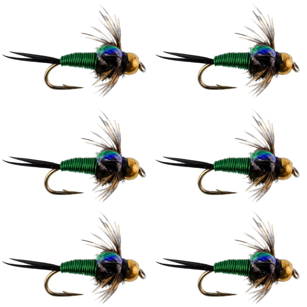 Home»Bead Head Green Copper John Nymph Fly Fishing Flies - Set of 6 Flies Hook Size 18