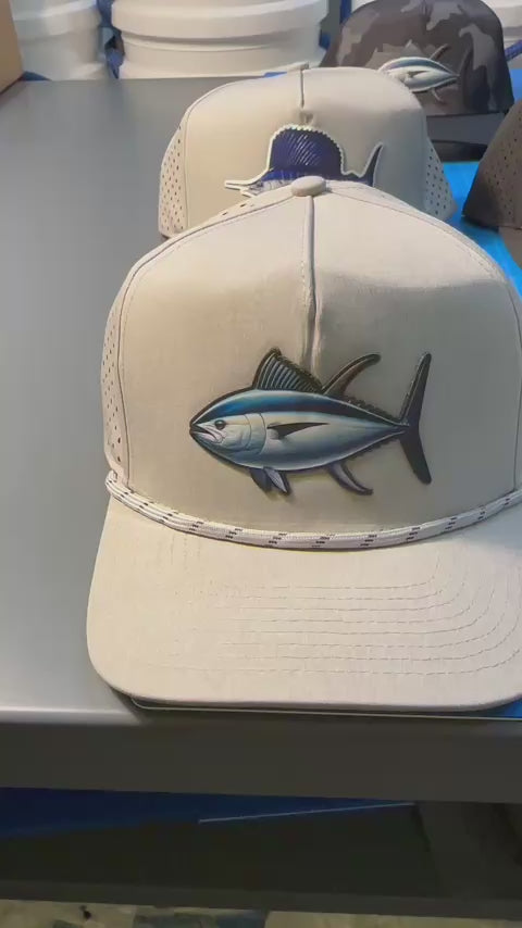 Built for anglers who live the offshore grind, the Get Tight Gear Black Camo Hat combines style, performance, and durability. Featuring a premium water-repellent 5-panel design and breathable mesh backing, this hat keeps you cool while holding up to salt, sun, and spray. The bold camo pattern is paired with a raised UV-printed fish patch — your choice of Mahi Mahi, Sailfish, Swordfish, or Tuna — making it a statement piece whether you’re on deck or at the dock bar.