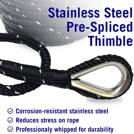 • Stainless Steel Pre-Spliced Thimble: The anchor rope thimble makes the line extremely durable while reducing chafe and spreading the load on the line.