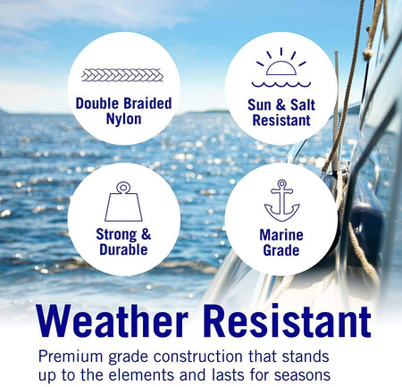 • Salt, Sun, and Water Resistant: This durable marine anchor line is reliable and withstands being submerged in water without breaking down. This premium double braided nylon anchor line resists oils, gas and abrasion.