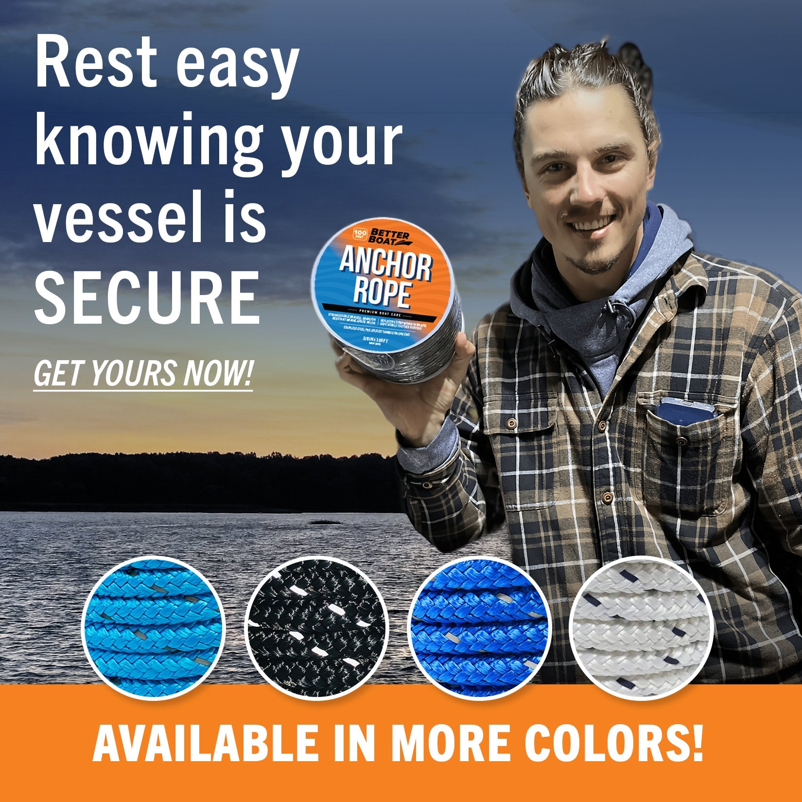 Our black 100 ft marine anchor rope is made with premium marine-grade double braided nylon that is ultra-strong and durable, it is UV and abrasion resistant, won't fray and will remain flexible. Try these boat anchor lines risk free for 30 days - love them or get your money back!