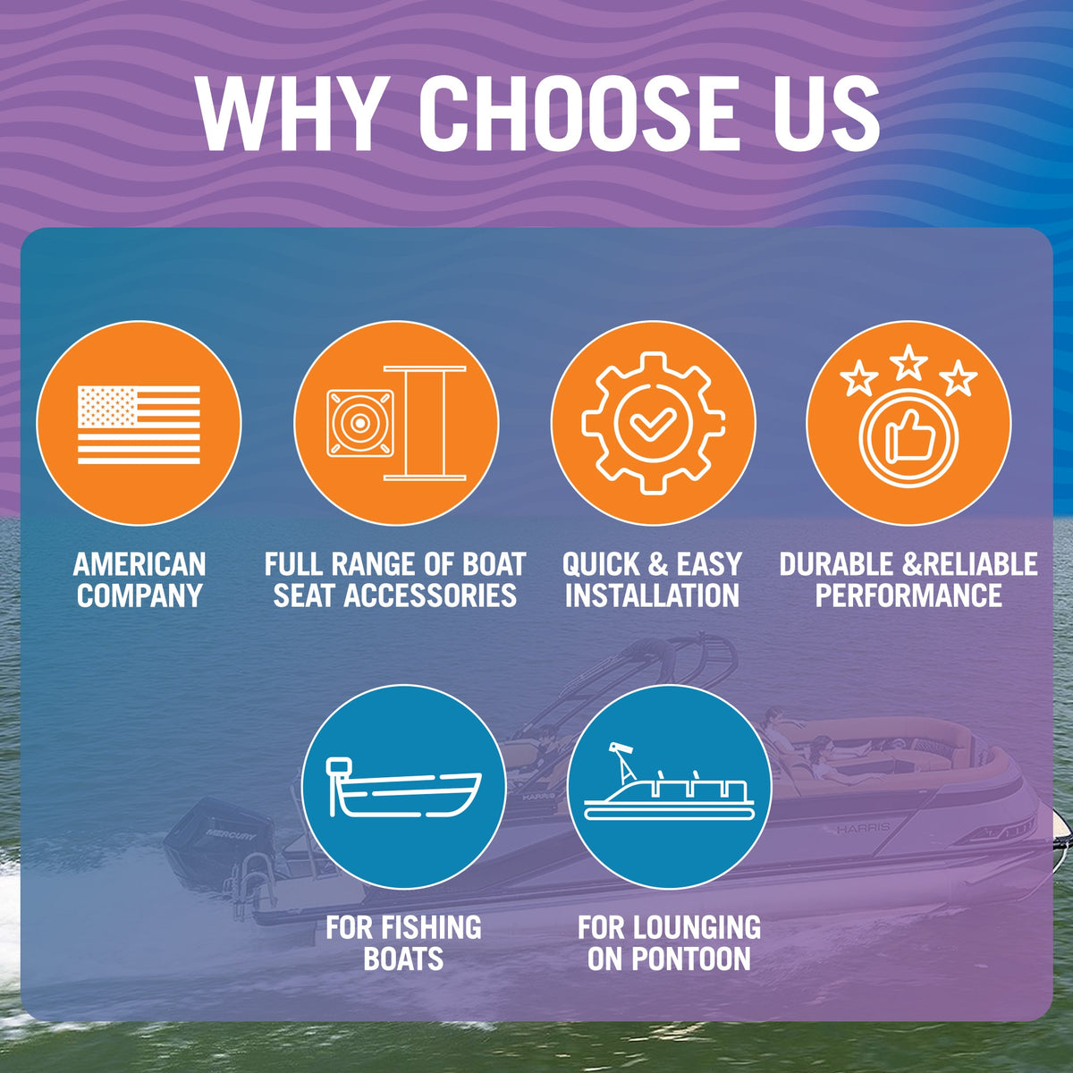 • ENHANCED COMFORT: Featuring a heavy-duty spring, our boat seat base offers the perfect mix of comfort and support, ideal for both casting and captain seats.