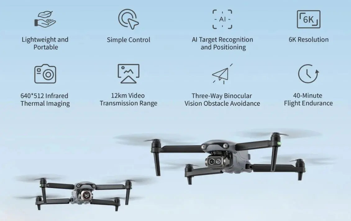 Equipped with a 6K visible-light camera, it can still capture high-definition, low-noise images in low-light environments, providing insights into targets and empowering police enforcement, patrol inspection, search, and rescue scenarios.