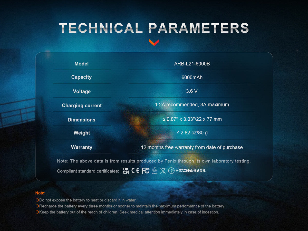 The Fenix ARB-L21-6000B Rechargeable Powerbank Battery offers a high-capacity 6000mAh energy reserve within a compact 21700 battery format. It supports efficient USB-C charging and not only powers your 21700 battery flashlights but can also serve as a power source for other USB-C devices using only the included USB type C cable.