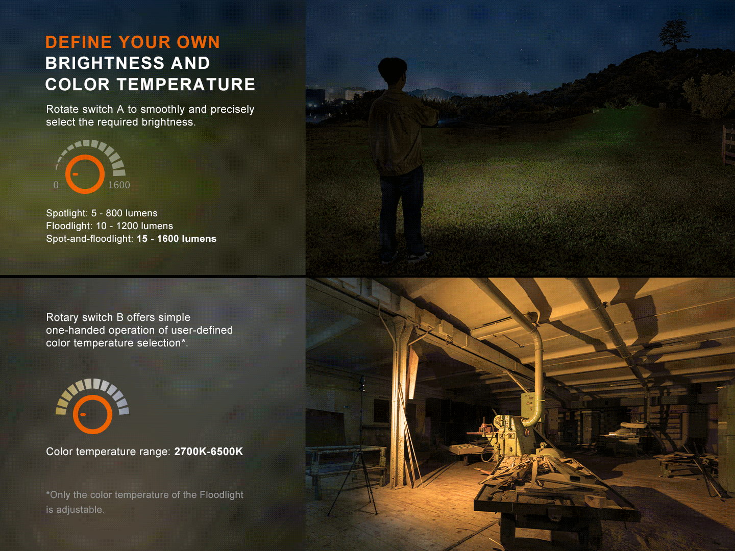 The Fenix CL27R lantern is your ultimate lighting solution with a powerful 1600 lumens output and 180-meter beam distance. This versatile lantern features a dual distance beam system, combining a 14.5-degree spotlight and a 105-degree floodlight that can be used separately or together. Its 360-degree rotary magnetic handle allows easy carrying, hanging, or attachment, while stepless brightness and color temperature regulation (2700K-6500K) provide perfect lighting for any situation. With a USB-C rechargeable battery offering up to 285 hours of runtime, IP66 waterproofing, and drop resistance up to 1.5 meters, the CL27R is built for any adventure.