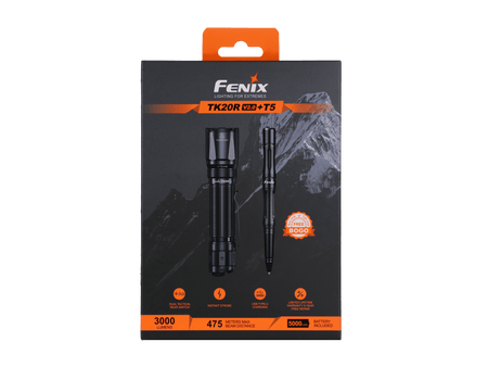 For a limited time, you can choose to receive a FREE Fenix T5 Tactical Pen/Flashlight with the purchase of your TK20R V2 flashlight. Select "TK20R V2 + FREE T5" option below the product title. Please note the T5 pen is only available in black for this bundle. No substitutions allowed.